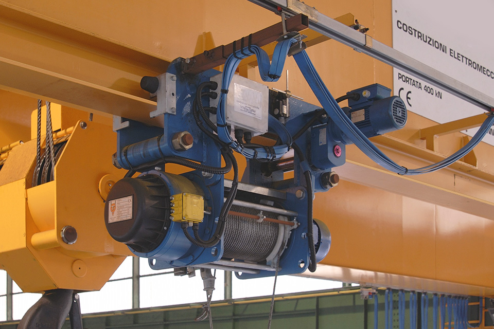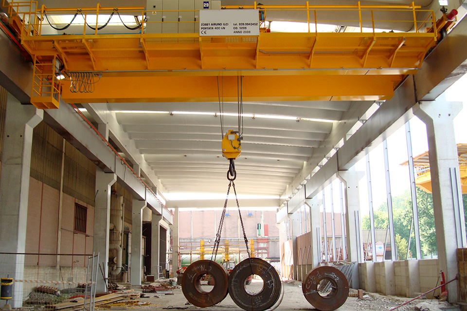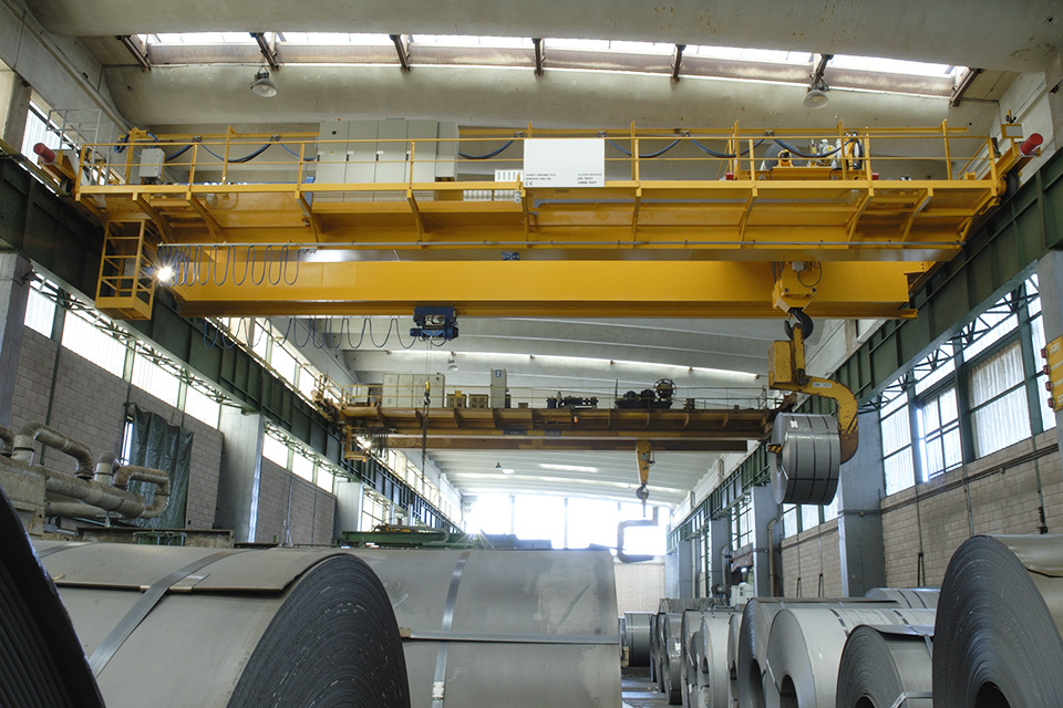 Le gru a ponte speciali possono essere equipaggiate con specifiche attrezzature sotto-gancio come benne, bilancini, ventose e magneti, in base alle esigenze di movimentazione.