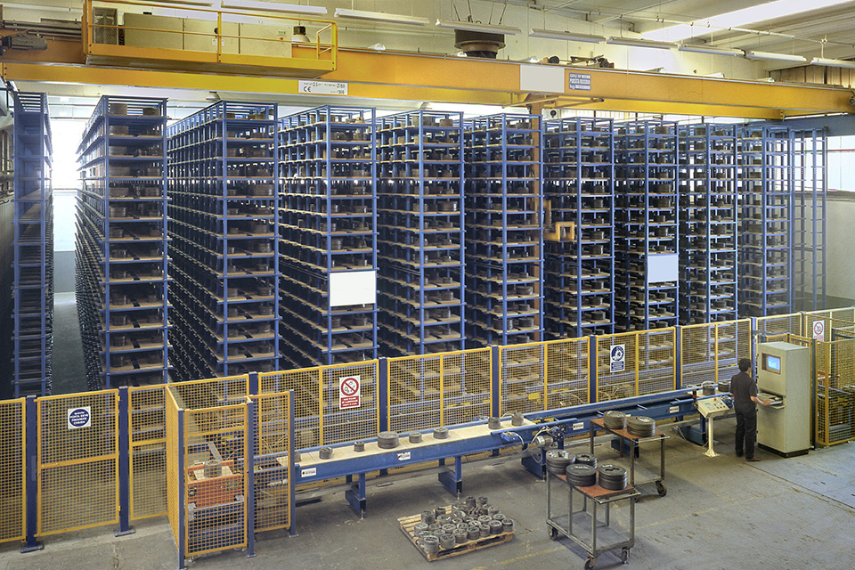 Progettate e realizzate con o senza carrelli girevoli, argano singolo o doppio, possibilità di movimenti ridondanti, equipaggiabili con organi di presa, come pinze, ganci a C, traverse, ventose ecc. Sono la soluzione ideale per lo stoccaggio di materiali in capannoni adibiti a magazzino o in apposite robuste scaffalature modulari. Le gru automatiche per magazzini possono essere equipaggiate con dispositivi elettronici per controllo del pendolamento del carico, lettori barcode per il tracciamento del materiale a magazzino, forcole di presa e deposito pallets, limitatori di carico ad alta precisione con misurazione del peso con visualizzatore e molto altro.